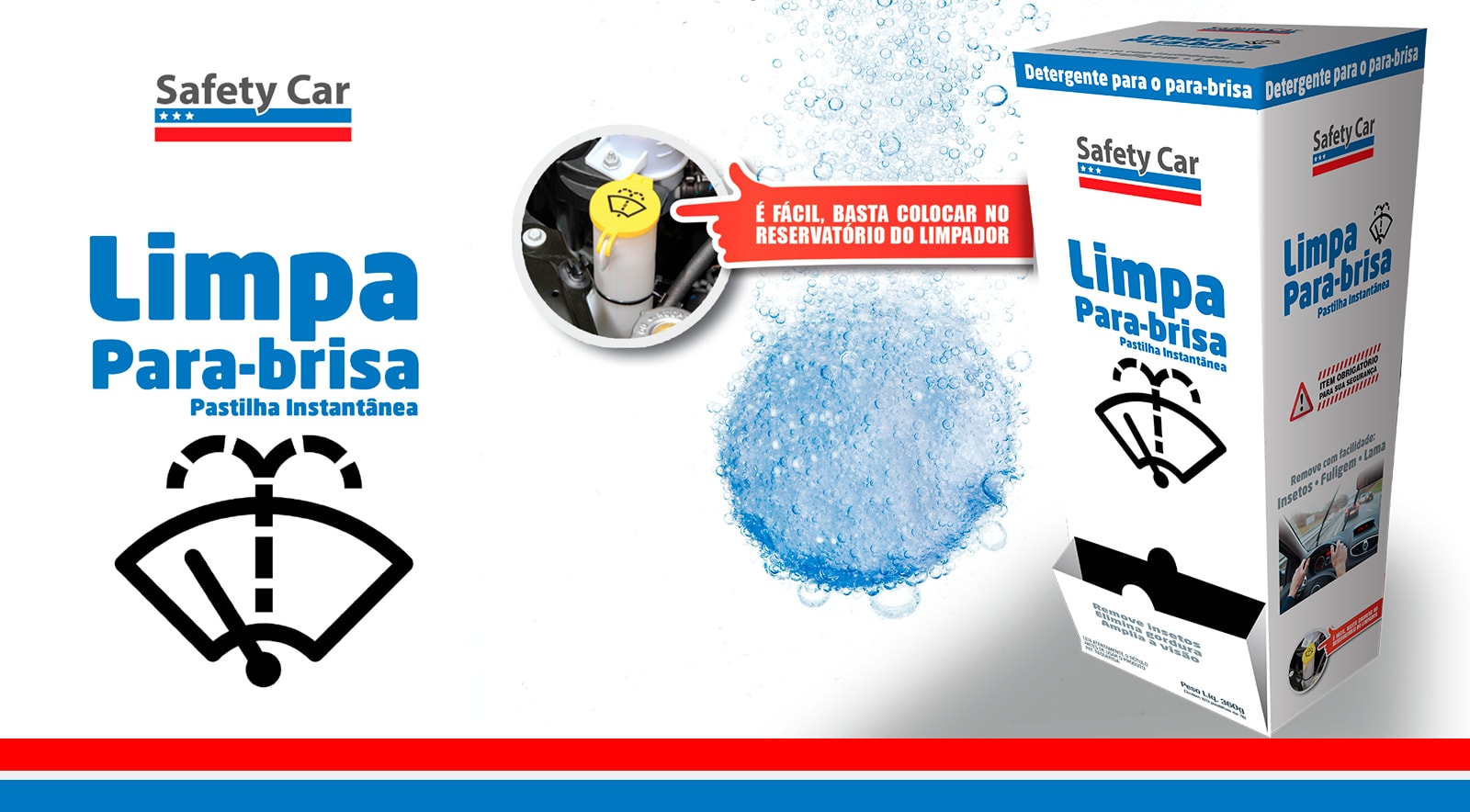 Com uma tecnologia avançada em forma de uma pequena pastilha concentrada, a Pastilha Limpa Para-Brisa Safety Car limpa os detritos mais dificeis como graxas, insetos, fuligem e lama sem esforço, alem de preservar a palheta limpadora do seu veiculo.